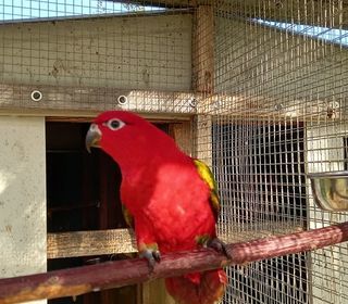 dispose couple lori des Moluques male et femelle B 25 EPP PE NC sexer ADN en volière extérieure
