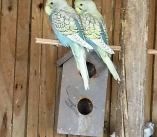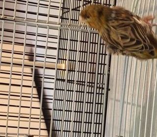 Vends 1 couple de canaris de 2025, mâle brun porteur de blanc bagué et femelle panaché orange élevés en volière extérieure.