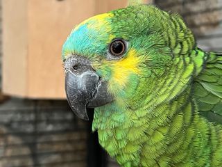 Propose une femelle Amazone à front bleu (Amazona aestiva), née en captivité le 30 mai 2025, propre élevage, EPP (elle a été élevée par ses parents, elle n'est donc pas EAM),