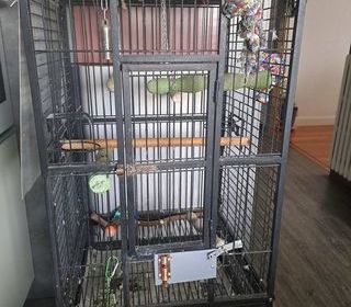 CEDE CAGE POUR GROS PERROQUETS COMPLETE AVEC PERCHOIRS .ACCESSOIRS ET MANGEOIR INOX