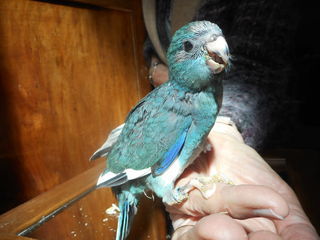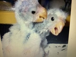 Vends kakarikis élevés à la main âgés de deux mois 2 femelles couleur blanc 1 bleu 1 jaune Prix : 90 € l'un