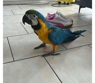 2 mâles ara ararauna élevé à la main Né fin octobre 2025 Oiseaux bagues Sexe. Adn Les ioseaux seront vendu a certificat de cession. Et sexage ADN