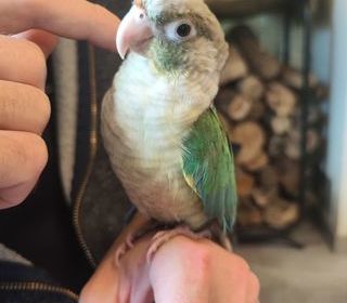 Bonjour, je vends une conure de Molina mutation turquoise cinnamon EAM. Elle s'appelle Bluebi. C'est une femelle. Elle est née le 24 mai 2025. Elle est baguée, sevrée, sex