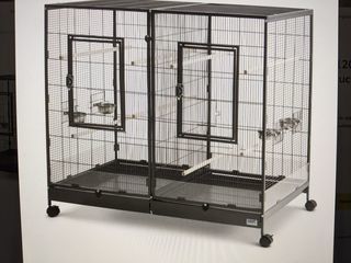 Cage oiseaux complète avec accessoires sur la photo, nid etc.... 55 x 30 x 30, propre, séparation et grille de fond, tiroir, portes sur les cotés et devant. Il y a les 4 petites