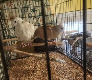 Tourterelles rieuse femelles sexées adn et Bagué CDE et club français des tourterelles. Deuxième photo, au centre, le père.
