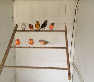 Particulier vends canaris mâles 2025 agate rouge agate mozaique rouge élèves en volière extérieur 20euros pièce