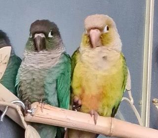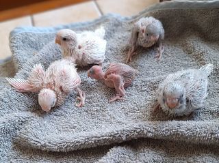 Vends perruches ondulées pour élever à la main ou attendre le sevrage et dans ce cas nourris par les parents Père tout blanc aux yeux noirs Mère bleue panachée