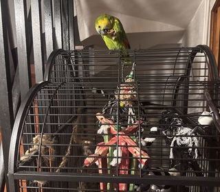 Bonjour, Nous cherchons une nouvelle maison pour notre Pyrrhura qui s' appelle Vilain car on déménages et ne pouvons pas le prendre avec. Il a 1 ans et demi, il sort de sa cage