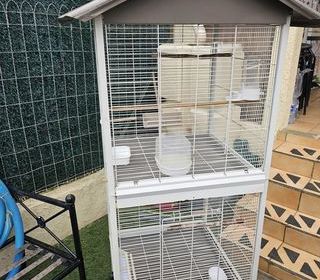 Vend une volière d occasion avec accessoires, on peu la séparer en 2 ou bien enlevé la grille et le tiroir du milieu pour en faire une grande volière H, 1.63m L, 0'60m P, 0.60