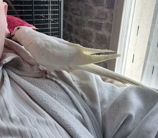 1 mâle perruche calopsite EAM (élèvé à la main) né le 29 juin 2025 à adopter. Bagué et testé par ADN