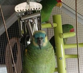 Perroquet amazone a front blanc mâle 3 ans Femelle amazone a front bleu de 3 ans Habitué à être en liberté dans la maison Parles ect Vendu ensemble de préférence car il s'en