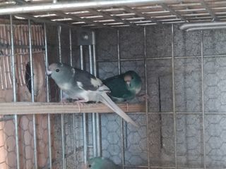 Le mâle est gris,crème et bleu ciel (mutation très rare) 110€ EAM, les deux femelles la bleu panaché crème : 90 €. EAM. La crème 80 € EAM. Les trois sont sevrés. A venir chercher s