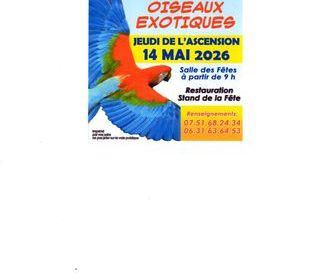Le Club AOPN organise une Exposition Bourse aux Oiseaux Exotiques le 14 05 2026 le jour de la fêtes des fleurs et de l'artisanat.
