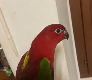 Perruche rouge eam mà¢le élevé à la main depuis tout petit, cherche un foyer rempli d'amour pour poursuivre sa vie. Me contacter en privé pour plus de renseignements. L'adopti