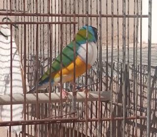 Mâle Gould de 2024 acclimaté (vie en volière extérieure sans chauffage) a déjà eu des petits l'année dernière .,échange contre mâle pape de Nouméa. Ou femelle canari agate opaline