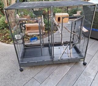 vends cage oiseaux marque "SAVIC" modèle Tasmania 120cmX65X107 avec accessoires (petite cage en bois pour nicher +réservoirs d'eau et mangeoires +quelques perchoirs etc..) se dépl