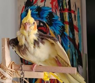 Magnifique jeune Calopsitte, habitué à venir sur les mains, reste en liberté la journée avec ses parents dans le séjour et rentre le soir dans sa cage.