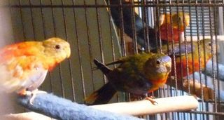 Jeunes perruches turquoisines nées le 30 décembre 2025. Baguées CDE et testées par ADN . Un mâle (le plus foncé avec poitrine rouge en reflet dans le miroir) et une femelle (sa soe