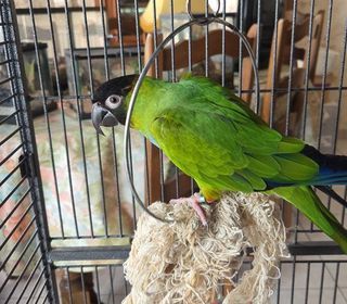 Conure nanday mal de 3 ans eam possible avec la cage en supplément 270e le tous sinon seule 200e