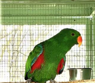 Disponible un mâle perroquet Eclectus Il a été EAM (élèvé à la main) mais il vit en volière depuis 2 ans.