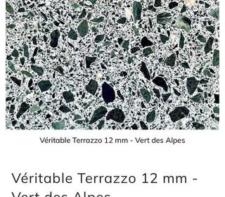 25 carreaux (60 x60) de Terrazzo vert pour sol et mur. Surface possible 9m2. Il me reste aussi de nombreuses chutes utilisables pour plinthes ou autre que je donnerai à l'acheteur