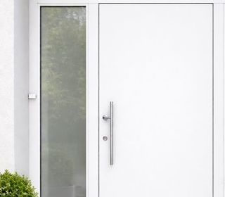 porte d entrée en aluminium pour maison véranda ou immeuble ou autre L 1425mm H 2540mm imposte haute fixe de 400mm poussant gauche porte pleine isolée.serrure trois points seuil