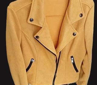 Veste jaune moutarde forme perfecto. Tissus épais, très bel effet, parfait état.