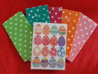 LANMOK Lot de 50 Sacs en Papier coloré pour Bonbons de Pâques avec 144 Autocollants scellés pour décoration de Table de Pâques pour Enfants fête d'anniversaire Emballage Cadeau