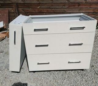 Vends casserolier trois tiroirs 0,90 m, meuble d'angle 0,80 m, deux meubles 0,60m, un meuble 0,40m Le tout 40 euros