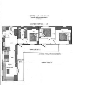 Une chambre, une salle à manger/salon de 24 m2, cuisine équipée neuve (plaque électrique four hotte évier), Salle de bains, wc, cave, fibre internet, (idéal professeur collège Pier