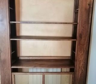 Etagère ancienne L 145, P 35, H 202 3 plateaux, petites étagères dans les colonnes Bas : grille de protection radiateur, facile à supprimer A prendre sur place, pas de livraison