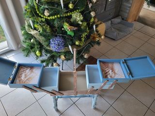 Dressing d'angle d'intérieur état neuf, couleur bois clair et blanc. Tiroirs amortisseurs -penderie. Possibilité de livraison et montage en supplément 450€ Dimensions sur photos