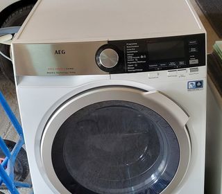 Lave-linge séchant AEG blanc, hublot en façade, panneau de commande digital, plusieurs programmes disponibles. Bon état général. 9 kgs lavage et 6 kgs séchage. Très bon état. Not