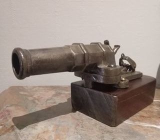 Objet de curiosité fin 19e siècle pour collectionneur averti longueur sans le socle 21cm En fonte d'acier avec marquage Effaroucheur Rare dans cet état de conservation