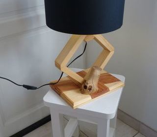 Vend une jolie lampe de chevet en pin massif fabrication artisanale