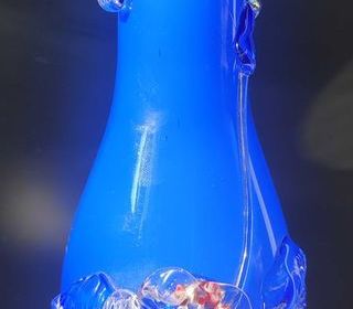 Vase+artisanal+italien+des+années+60/70+en+parfait+état.+Il+s'agit+d'un+verre+soufflé+à +la+bouche+avec+un+extérieur+bleu+cobalt+intense+et+un+intérieur+en+opaline+blanche.+On+dist