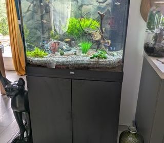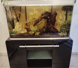 Aquarium avril 2025 état neuf cuve 150x40x60 meuble 150x40x80 gros matériel d'entretien et nourriture nombreux produits d'entretiens. Décoration plantes réelle nombreuses rochers e