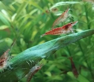 vends mes red cherry issues de mon aquarium jamais croisées avec d'autres variétés Très belles et colorees 1euro la crevette 10 euros les 15