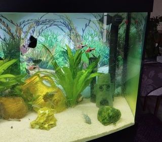 Poissons d'eau douce Néon (x3) - Nez rouge (x3) Scalaire (x1) Gourami bleu (x1) Gourami golden (x1) Xipho (x1) Barbus (x2) Tetra citron (x1) Escargot (x1) Serpent
