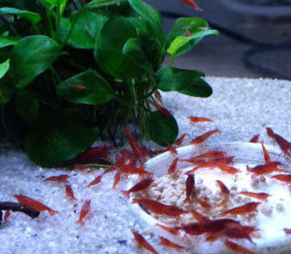 Crevettes rili red de 1 cm environ maintenu avec l'eau du robinet très belle couleur TARIF :10 CREVETTES : 30 EUROS ENVOI EN 48H POSSIBLE en colis isotherme avec chaufferette O
