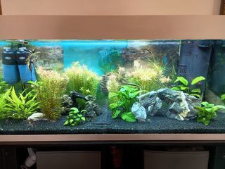 A vendre aquarium EHEIM vivaline led 180 Aquarium complet avec meuble, plantes, filtre externe JBL cristal profi E 702, système CO2, contrôleur de température, distributeur de nou