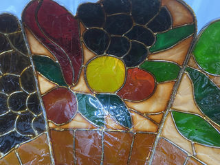 Suspension en verre teinté de style "Tiffany" des années 60. Très bon état général malgré son âge, un nettoyage et elle sera prête à l'emploi ! - D60x40cm - Quelques retraits de