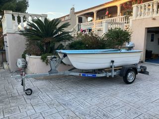 Uh Bateau de pêche acheté de voisin/voisine à 1500 heures il y a 20 ans que j'ai rénové en peinture spéciale mer 2 teintes blanc/bleu en 2010 puis j'ai remplacé par une remorque ne