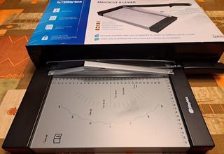 Massicot à levier permettant de couper photos, papier, carton et feuilles de plastique. de marque Waytex Découpe sécurisée avec cale de maintien et loquet de verrouillage de la la