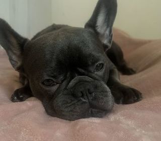 À vendre très belle bouledogue française, femelle, de couleur gris foncé, âgée d'environ 1 an. Chienne de taille moyenne, douce, calme et habituée à vivre en famille avec des en