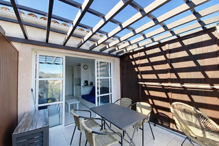La plus belle vue du village de Cap Esterel. Studio équipé d'une chambre cabine. Double climatisation, frigo congélateur, lave vaisselle, lave linge, boite à clefs, boite aux lettr
