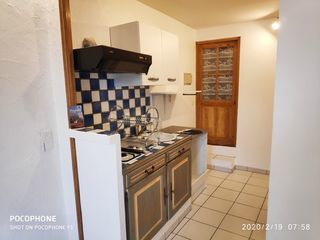 LOUE T 2 DE 33 M2 / 2 ÉTAGE DANS UNE MAISON DE VILLAGE EXPOSITION SUD SALON COIN CUISINE SEMI ÉQUIPÉE PLAQUE GAZ 2 FEUX ÉVIER HOTTE MEUBLE SOUS ÉVIER *** SALLE DE D