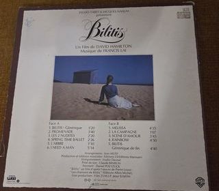 Disque vinyle 33 T de la bande originale du film "Bilitis", composé par Francis Lai. Pochette avec illustration et liste des titres sur le dos. Présence de petites marques d'usure
