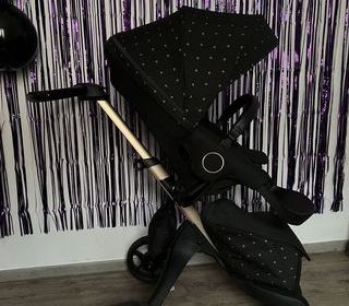 À vendre poussette Stokke Xplory X Signature noire à pois, NEUVE, avec boîte d'origine. Poussette haut de gamme, jamais utilisée. Très confortable, maniable et élégante. Stru