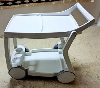 Desserte de jardin / table roulante pliable, en résine blanche, de marque Nardi modèle Galileo Cette table n'a jamais été utilisée Hauteur : 65 cm et 75,5 cm à la poignée Longue